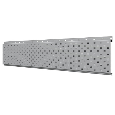 Линеарная потолочно-стеновая панель с ПЕРФОРАЦИЕЙ для вентиляции цвет RAL7004 Серый применяется в качестве софитов для подшивы крыши, наружной и внутренней отделки потолков, стен, фронтонов фасада дома в Самаре.
