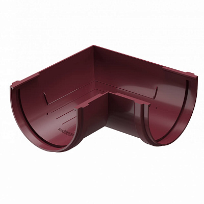 Угловой элемент желоба универсальный ДЕКЕ STANDARD d120мм 90 градусов цвет RAL 3005 Красный в Самаре. Угловые элементы устанавливаются как на внешних, так и на внутренних углах кровли и предназначены для соединения желобов.