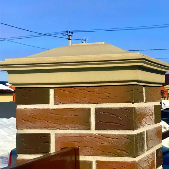 Фото 1 Колпак Monblan Бежевый на столбах кирпичного забора