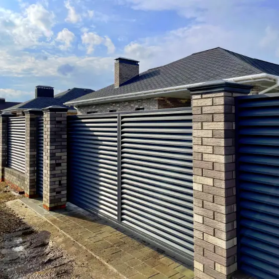 Забор жалюзи ЭКО-Z RAL 7024-7024 МАТТЕ Серый Графит матовый двусторонний с кирпичными столбами Забор жалюзи ЭКО-Z RAL 7024-7024 МАТТЕ Серый Графит матовый двусторонний на кирпичных столбах Забор жалюзи ЭКО-Z RAL 7024-7024 МАТТЕ Серый Графит матовый двусторонний с металлическими столбами Забор жалюзи ЭКО-Z RAL 7024-7024 МАТТЕ Серый Графит матовый двусторонний на металлических столбах