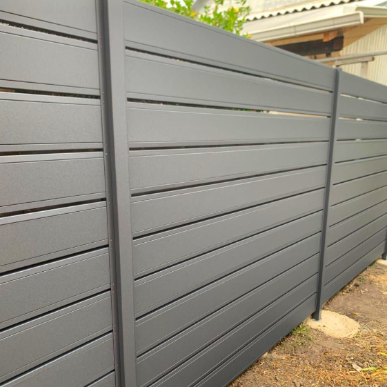 Забор ранчо-жалюзи комбинированный RAL7024 МАТТЕ Серый Графит матовый, Забор ранчо из металлопланкена 7024 МАТТЕ Серый Графит матовый с еврожалюзи, Забор ранчо из планкена 7024 МАТТЕ Серый Графит матовый, Забор ранчо металло планкен 7024 МАТТЕ Серый Графит матовый, Забор ранчо из металлопланкена RAL7024 МАТТЕ Серый Графит матовый